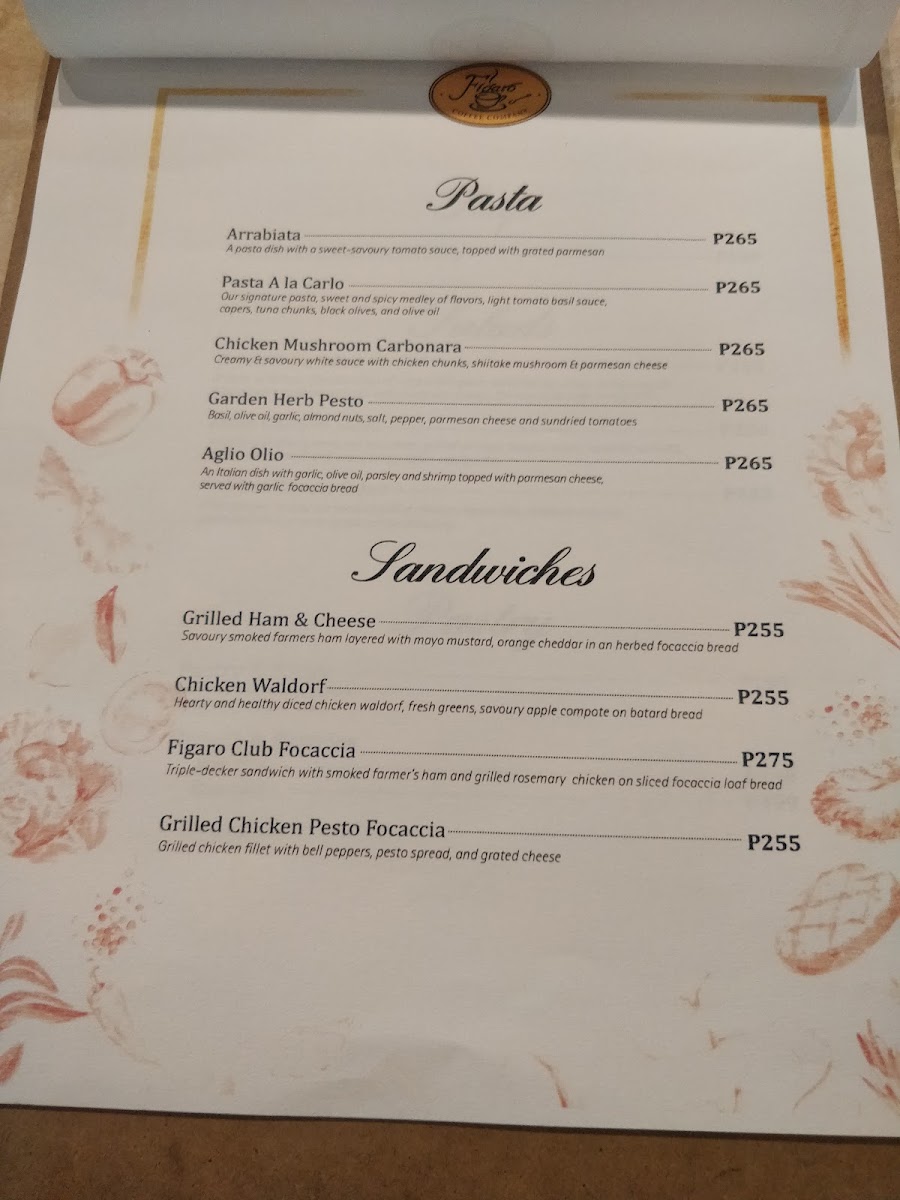 Now, let’s talk about the star of the show: the menu! Figaro Coffee presents a delicious array of dishes that cater to every palate. Their Grilled Ham and Cheese sandwich (₱368.00) is a classic comfort choice, featuring layers of savory ham and gooey melted cheese nestled between perfectly crisped bread. For those seeking a herbaceous touch, the Grilled Chicken Pesto Focaccia (₱368.00) brings a fresh and vibrant flavor with its warm focaccia, fresh basil pesto, and a satisfying melt of cheese. If you’re feeling particularly adventurous, treat yourself to the Figaro Club Focaccia, a hearty sandwich combining ham, bacon, chicken, and cheese that promises a feast with every bite.